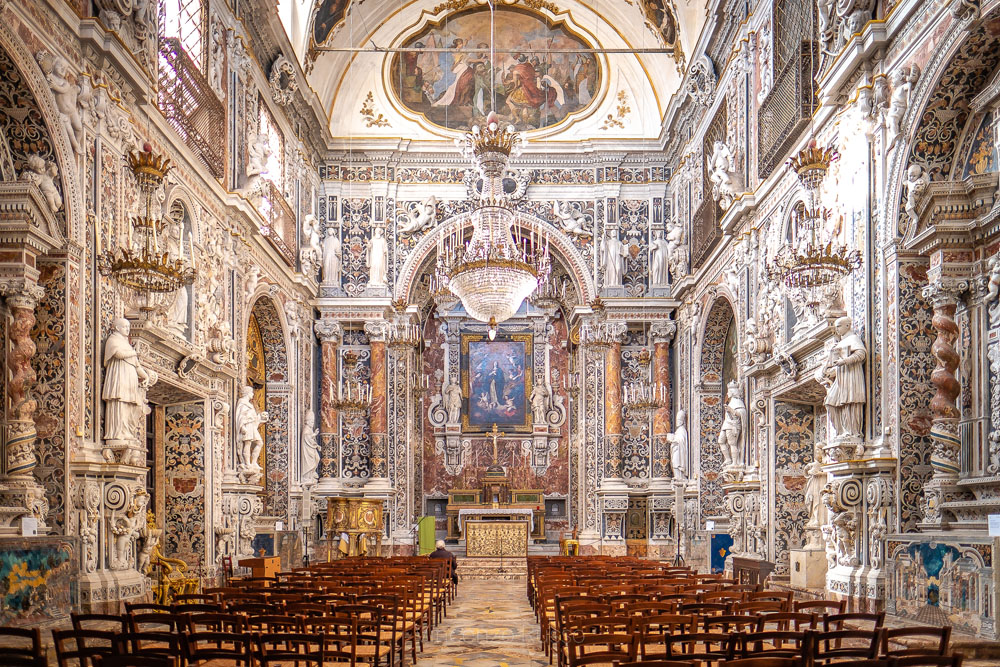 Poco prima di Porta Carini, si trova uno dei più superbi gioielli della città, vero trionfo del barocco elegante palermitano e orgoglio delle maestranze locali: la chiesa dell’Immacolata Concezione. Entrando, quello che più colpisce è la preziosa decorazione marmorea che investe tutto il perimetro murario, un apparato decorativo incontenibile che si conclude con la grande tela della “Immacolata Concezione” del 1637 opera di Pietro Novelli. E’ questa la prima visita del tour “Le strade del Capo” di domenica 17 novembre.