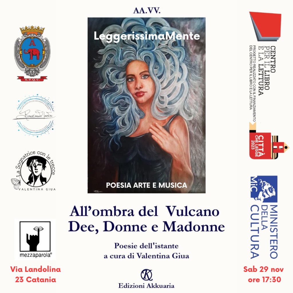 Sarà presentata sabato 29 novembre alle ore 17.30, presso Mezzaparola a Catania, l’antologia poetica “Dee, Donne e Madonne all’ombra del Vulcano”, nata dal Laboratorio di Poesia dell’Istante condotto da Valentina Giua all’interno della Galleria d’Arte Moderna di Catania, in occasione dell’esposizione artistica di Maria Tripoli.
