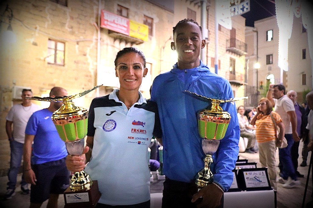 Soumaila Diakite atleta del Mali ma palermitano di adozione e Veronica Costanzo (Atletica Lentini), vincono il 45mo Trofeo podistico Ss. Crocifisso a Montemaggiore Belsito.