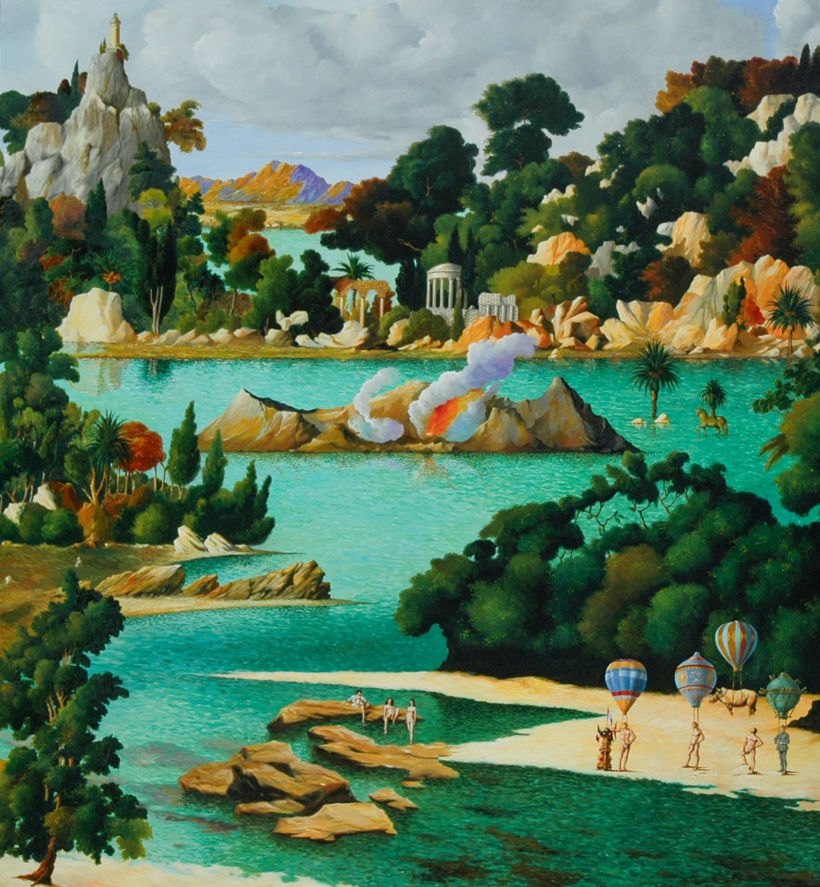 Inoltre bisogna assolutamente ricordare che Salvo Russo (insieme ad Alberto Abate) è stato tra gli artisti di punta della Galleria il Polittico, di Arnaldo Romani Brizzi che, a Roma, era il punto di riferimento della corrente figurativa (colta, anacronista o citazionista) che aveva come numi tutelari i critici Maurizio Calvesi e Italo Mussa. Al Polittico Russo ha esposto ben quindici volte, tre personali e dodici collettive. E come non sottolineare il suo rapporto con la storica gallerista Claudia Gian Ferrari che lo presentò al suo pubblico di Milano in tre mostre negli anni Ottanta. Abbiamo citato nomi di critici e galleristi che sono oggi scomparsi, ma che sono parte importante della storia dell’arte italiana, quella del Ritorno alla pittura, ed è bene che i giovani conoscano perché, oltre alla loro funzione specifica all’interno del panorama artistico, sono stati tutti dei grandi intellettuali.