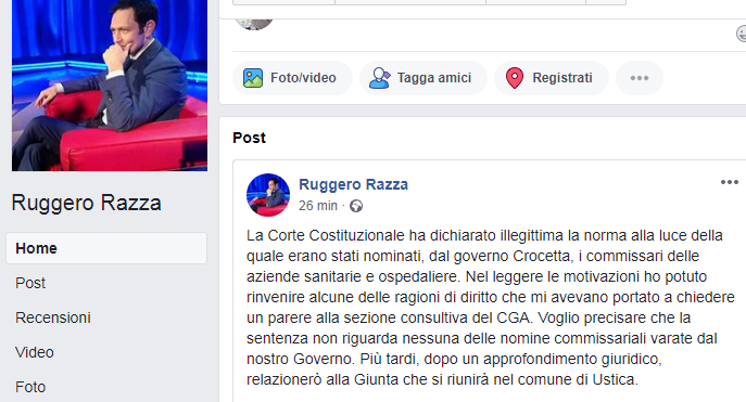 “La Corte Costituzionale ha dichiarato illegittima la norma alla luce della quale erano stati nominati, dal governo Crocetta, i commissari delle aziende sanitarie e ospedaliere”.