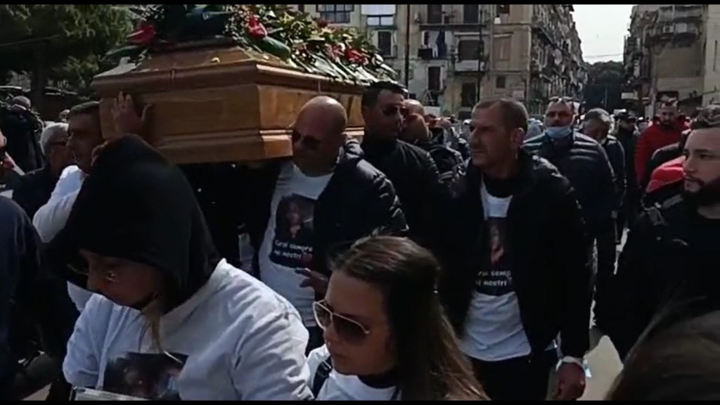 Fuochi d’artificio e musica quando la bara con dentro il corpo di Natale Caravello è uscita fuori dalla chiesa di Brancaccio. Tantissimi gli amici, i parenti e i colleghi di lavoro che si sono stretti attorno al dolore della famiglia che ora chiede giustizia dopo la morte dell’uomo. In tanti avevano le magliette con la foto di Natale Caravello.