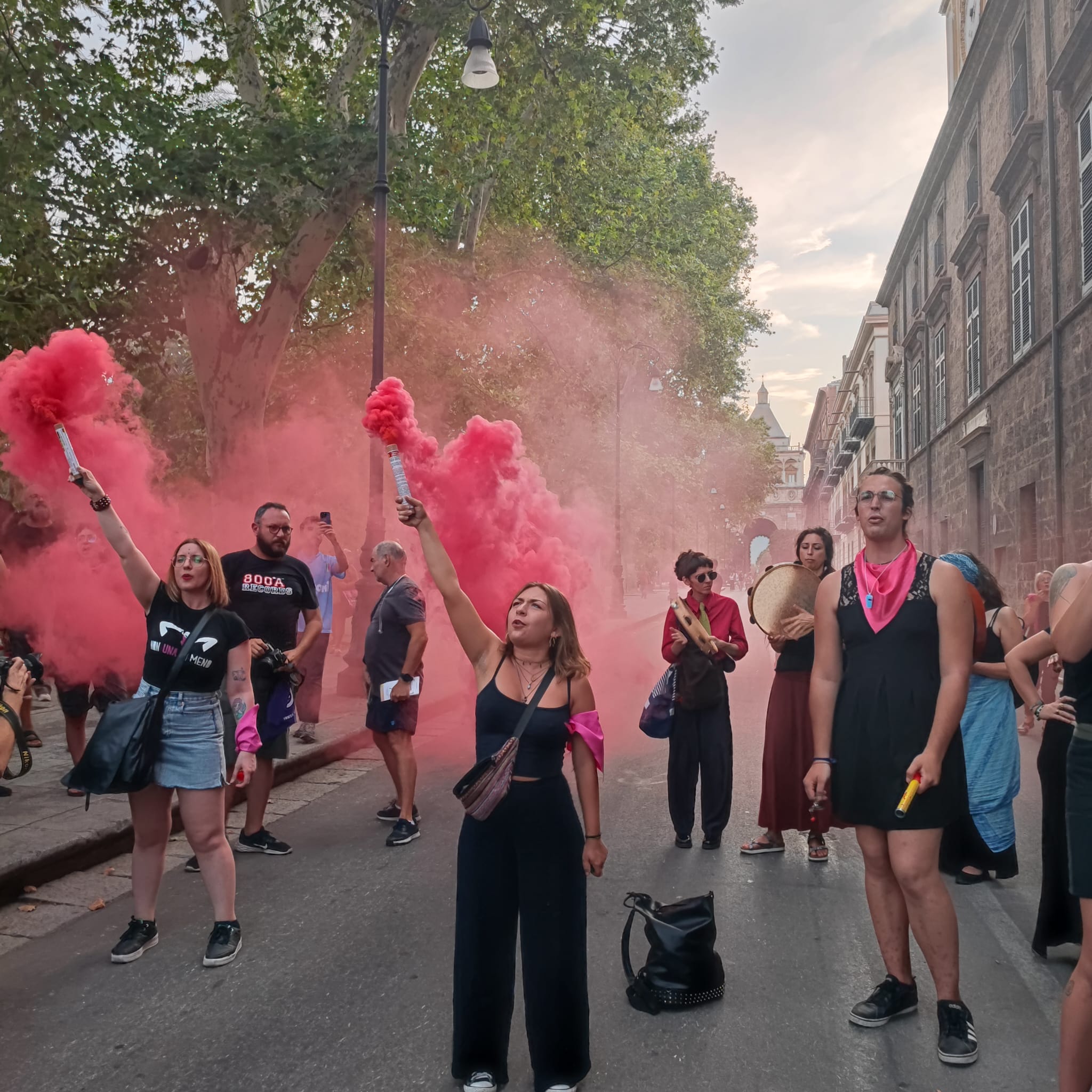 Passando per la sede del Comune, la Cattedrale e la questura, giungendo infine sotto i palazzi della Regione, la marea transfemminista ha condannato la complicità di tutte le istituzioni, per ribadire il grado di colpevolezza di tutti i sistemi di potere, per ribadire lo stato di agitazione permanente che “arriverà sino al 28 settembre e oltre, sino al 25 novembre e oltre, sino all’8 Marzo e oltre perché la nostra risposta è nella lotta dal basso e in uno stato di mobilitazione permanente! Perché se toccano un3, toccano tutt3 e tutt3 insieme rispondiamo! Perché le strade sicure le crea la comunità transfemminista che le attraversa!”
