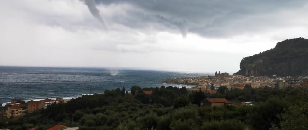 Una doppia tromba d’aria è stata vista e ripresa al largo della costa di Cefalù, nota località turistica e balneare in provincia di Palermo. Il fenomeno meteorologico non appena si è avvicinato alla costa si è dissolto non provocando danni a cose o persone.