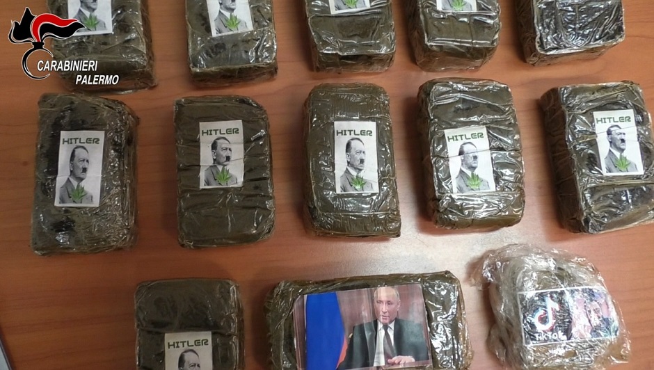I carabinieri del comando provinciale di Palermo hanno arrestato una palermitana di 28 anni al Borgo Vecchio trovata in possesso di panetti di hashish con la foto di Putin e Hitler.