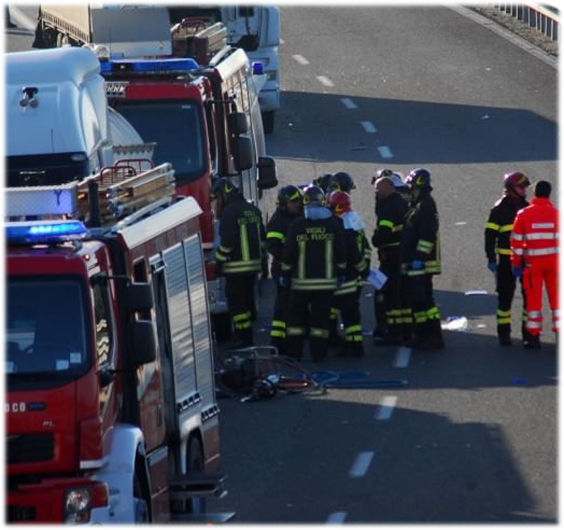 Un’autovettura è rimasta incastrata da due grossi mezzi pesanti. Due automobilisti che si trovavano all’interno sono rimasti feriti e sono stati trasportati in ospedale. Non si conosce la prognosi.