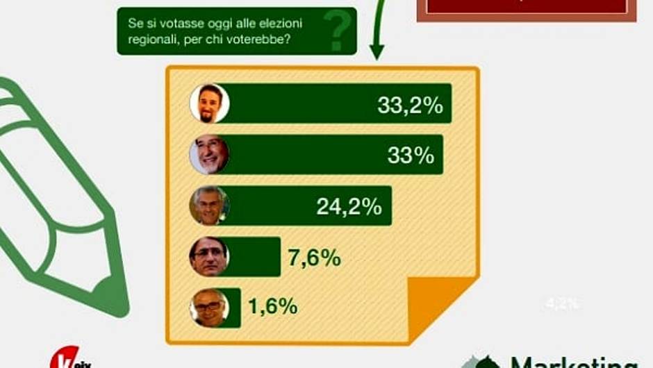 Secondo il sondaggio, è sopra la soglia del 5% il candidato presidente della Sinistra Claudio Fava, che raccoglie il 7,4,