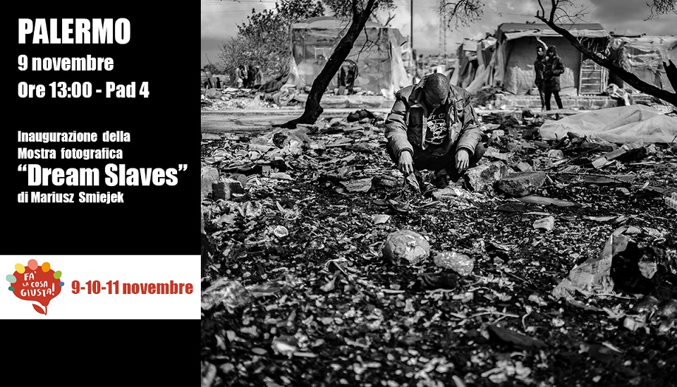 Non a caso, il padiglione 4 ospiterà per tutta la durata della Fiera, la mostra Dream Slaves del fotografo polacco Mariusz Smiejek, reportage di un viaggio durato otto mesi tra i migranti accampati nelle campagne della Sicilia tra baraccopoli e lavoro nero (https://www.mariuszsmiejek.com/dream-slaves). “La prospettiva di quest’edizione – dice Nino Lo Bello, coordinatore del Comitato Fa’ la cosa giusta! Sicilia – si propone di essere quanto mai glocal, di affrontare, cioè, questioni globali con lo sguardo alle buone pratiche locali e con proposte per un cambiamento dell’attuale sistema economico: dalla gestione dei rifiuti a partire dalle compostiere di comunità al turismo responsabile, alla salvaguardia del suolo e delle acque, al tema della finanza etica, alla filiera corta con la tutela dell’agricoltura contadina e della piccola pesca”.