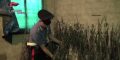Sono stati sequestrati 13 chili di droga, e tutto l’occorrente per la coltivazione e il confezionamento: una 1 bilancia elettronica da 40 chili, un sacchetto di plastica con parti di pianta di cannabis, vari attrezzi da lavoro, 8 confezioni di concime, un sacco di terriccio, una bacinella con circa 200 grammi tra fiori e foglie di cannabis, 163 rami e fiori di pianta di cannabis appesi a fili metallici.