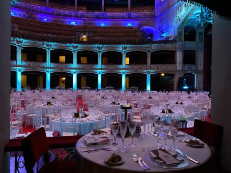 Un evento unico nel suo genere quello realizzato da Leone, sia per portata visto il numero degli ospiti, sia per la cucina mobile che si è dovuto impiegare e l’allestimento del teatro che certamente non nasce per questi scopi.