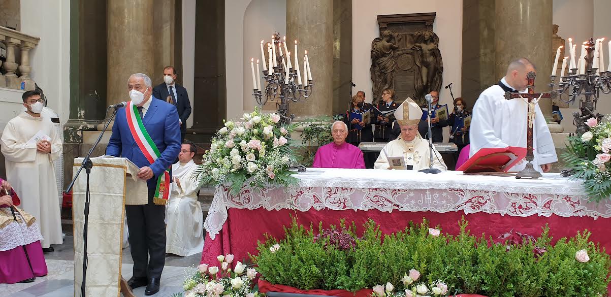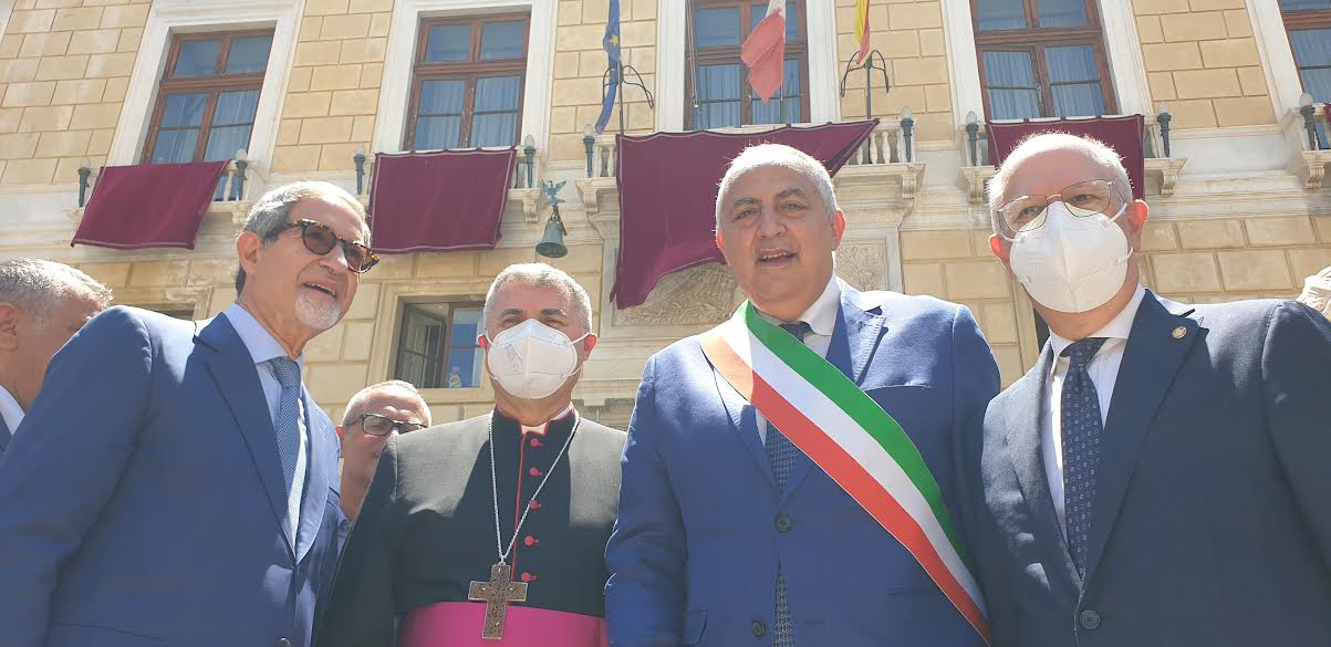 Signor Sindaco, il giorno in cui ho incontrato anche lei tra i candidati a sindaco della città le ho mostrato questo anello nuziale che mi è stato consegnato il giorno della mia consacrazione sponsale con la chiesa di Palermo, con questa città. Anche Lei e suoi collaboratori siete chiamati ad un atto di consacrazione d’amore. Falcone, Borsellino, Dalla Chiesa, Puglisi per questa città cercano soci d’amore. La Santuzza vi sia di esempio, accompagni la vostra diaconia, sia ancora corifea, insieme a tutti i martiri della giustizia e della fede, tra voi e con noi tutti, del canto di liberazione e di esultanza che ancora una volta la nostra amata Palermo deve elevare: