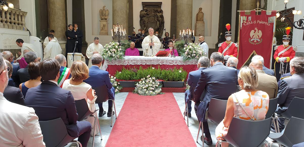 Entrano nel vivo le celebrazioni del 398° Festino di Santa Rosalia. In mattinata, l’arcivescovo di Palermo Corrado Lorefice ha celebrato la Santa Messa a Palazzo delle Aquile, sede istituzionale del Comune del capoluogo siciliano.