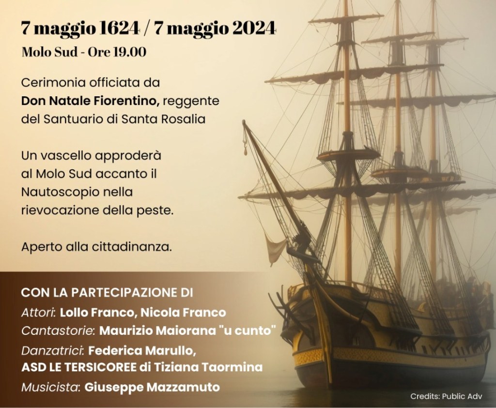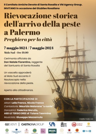 Palermo rivive l’arrivo della peste che esattamente 400 anni fa infestò la città seminando morte e disperazione. In occasione del Giubileo Rosaliano, oggi, martedì 7 maggio alle 19 presso il Molo Sud (Emiciclo Cala) a Palermo, la VM Agency Group e il Comitato Amiche Devote di Santa Rosalia vi invitano alla Rievocazione storica dell’arrivo della peste nel capoluogo siciliano.