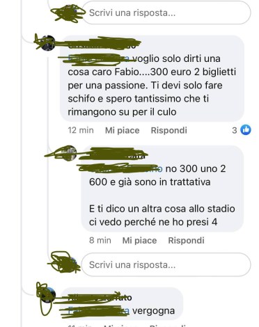 “I bagarini stanno già lucrando sui tifosi ed è una vergogna – raccontano Randazzo e Bevilacqua – I biglietti vengono venduti con rincari superiori anche del 2000% addirittura su Facebook, alla luce del sole. Un biglietto di curva dal costo di 5 euro, per esempio, viene rivenduto anche più di 100 euro, mentre ci sono molti tifosi abituali che sono rimasti senza. Una doppia ingiustizia”.
