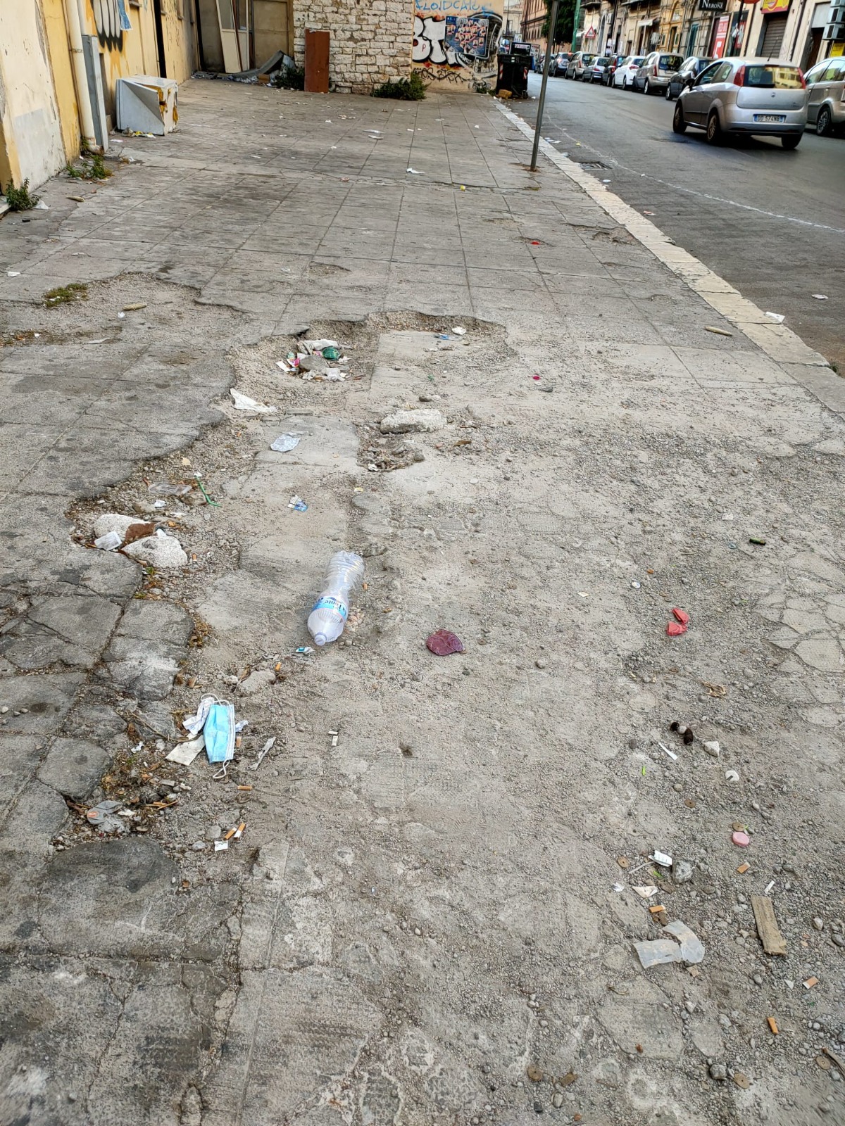 Se nelle scorse notti, sono stati avviati lavori di rifacimento del manto stradale lungo il salotto cittadino, via della Libertà, alcune zone non ricevono manutenzione da diversi anni con marciapiedi ridotti all’osso.