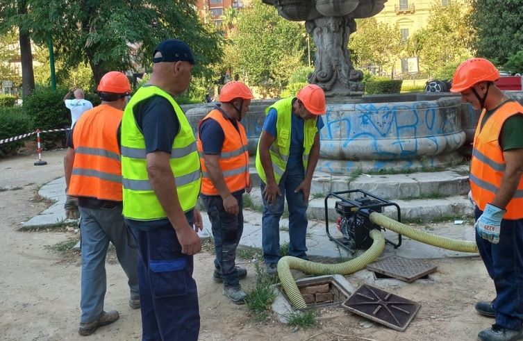 La fontana della Ninfa è stata resa nuovamente operativa da un intervento condotto dalle maestranze del Coime nella mattinata di oggi. Una mezza dozzina di operai, guidata dal dirigente Francesco Teriaca, ha ripulito le tubature della struttura, ripristinando il normale deflusso dell’acqua. Opere nelle quali i lavoratori hanno usato alcuni idranti per rimuovere tutta la schiuma dai sistemi idrici della fontana. “Durante l’intervento, i nostri operai sono rimasti impegnati per consentire il ricambio totale dell’acqua, la revisione delle tubature e delle pompe, oltre che la pulizia esterna della vasca dalle erbacce che deturpavano ulteriormente il monumento del Seicento – ha dichiarato Francesco Teriaca -. Resta da effettuare la pulizia dalle scritte che deve essere fatta con solventi sotto la supervisione della Sovrintendenza. Un grazie al caposquadra Pietro Citarrella e all’intera squadra che in mattinata ha definito l’intervento. La figura allegorica alla base del monumento che sembra gridare di dolore, grazie all’esempio di oggi, può sperare in un intervento risolutivo di cui si dovranno far carico altri soggetti”.