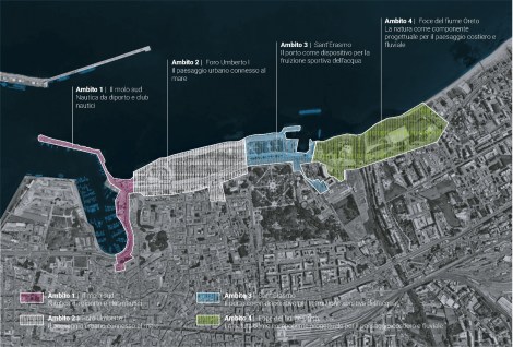 Ambito 3 – SANT’ERASMO: Trasformazione dell’area portuale in un centro per la fruizione sportiva dell’acqua, con la creazione di infrastrutture dedicate agli sport acquatici e al tempo libero.