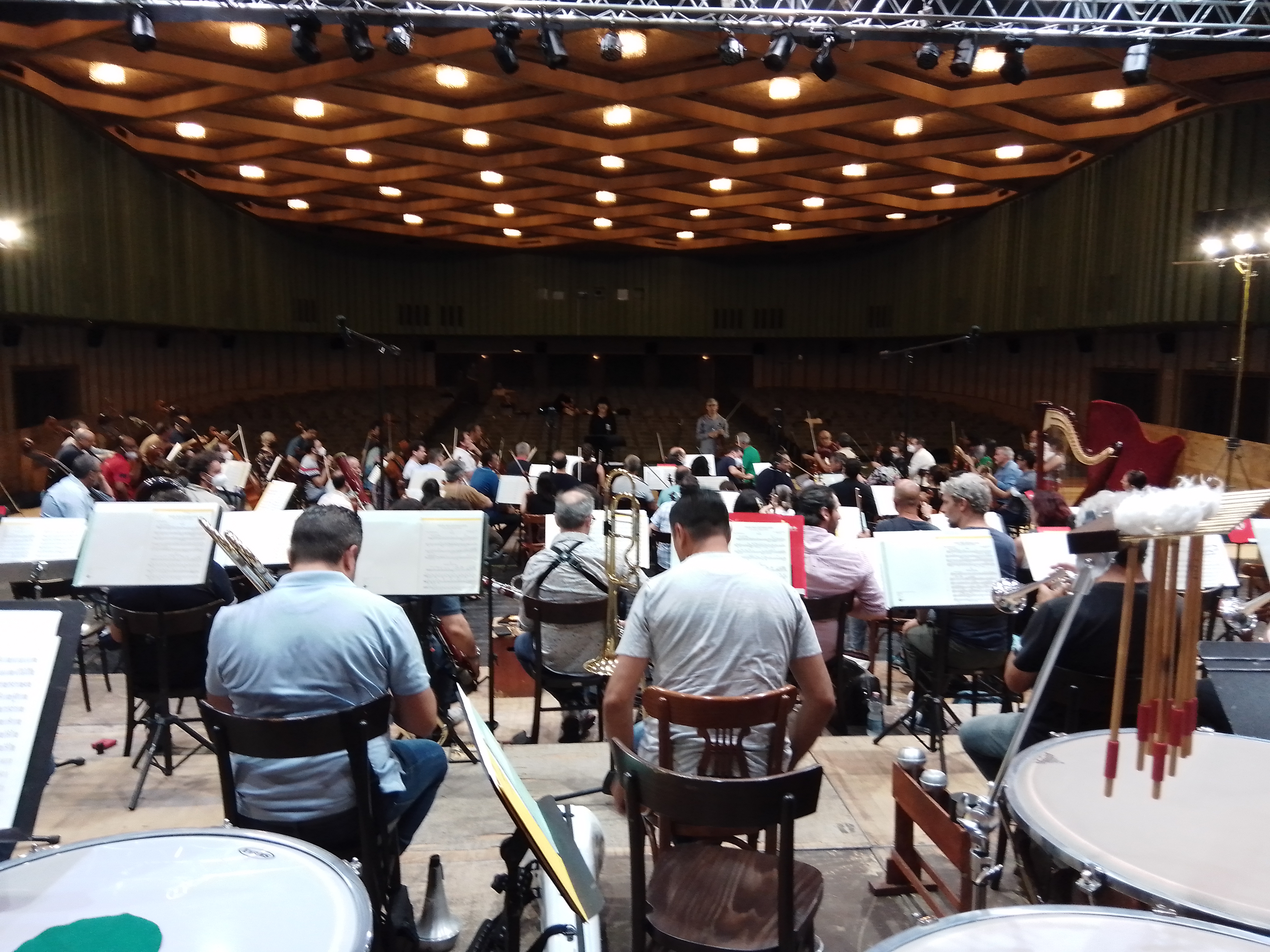 Dalle parole si è quindi passati ai fatti; dopo dodici mesi da quell’annuncio fatto a tutta l’orchestra, ecco che l’Oss è in sala per una doppia incisione discografica, l’una diretta da Giovanni Sollima e l’altra dalla stessa direttrice artistica Gianna Fratta. Dal 5 al 15 giugno l’Orchestra è stata impegnata al Teatro Golden di via Terrasanta per incidere prima i “Quattro interludi marini” dal “Peter Grimes” di Benjamin Britten, il poema dell’estasi di Aleksandr Nikolaevič Skrjabin e la “Sagra della primavera” di Igor Stravinskij, tre capolavori del Novecento storico diretti da Gianna Fratta. E poi la musica di Eliodoro Sollima, grande musicista siciliano, del quale si sono incisi “Rondó burlesco” per pianoforte e orchestra, Ouverture da camera per pianoforte e orchestra, Aria per violoncello e archi, Attesa, Concerto per archi.