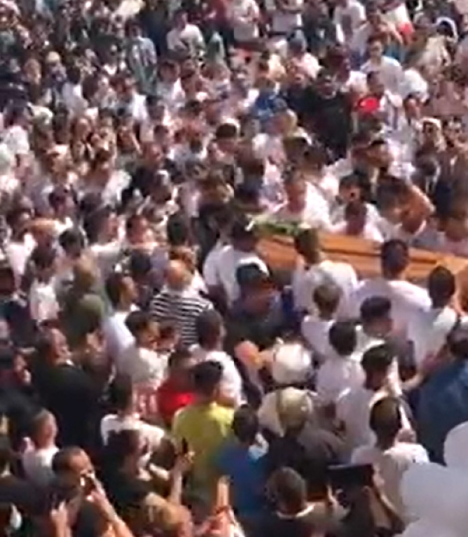 Il feretro è stato accompagnato dallo sparo di fuochi di artificio dai tetti di un palazzo, senza alcuna preventiva autorizzazione e creando una situazione di pericolo per i numerosi presenti. Gli agenti di polizia sono intervenuti. Hanno documentato gli eventi in corso, senza tuttavia intervenire sul momento, al fine di non provocare ulteriori influenze sulle condizioni complessive dell’ordine pubblico.