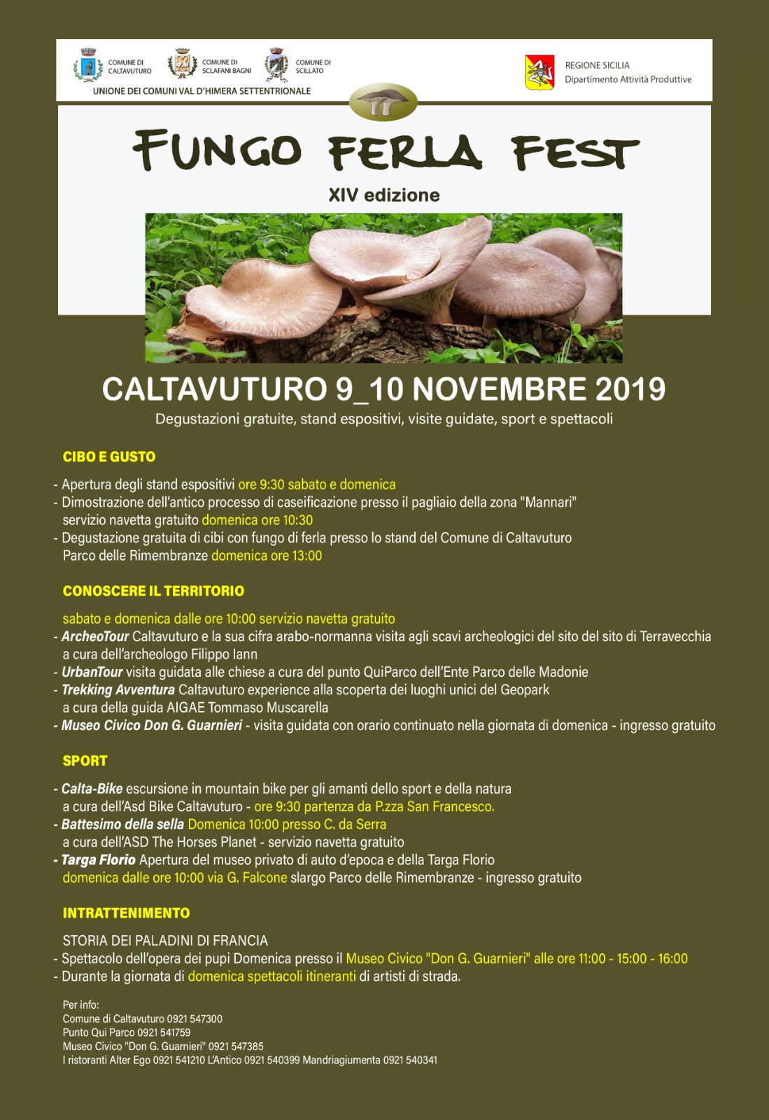 A Caltavuturo è tutto pronto per il “Fungo Ferla Fest“, il festival che sabato 9 e domenica 10 novembre celebrerà il pregiato fungo delle Madonie con due giorni di eventi enogastronomici, escursioni, attività sportive e conferenze.