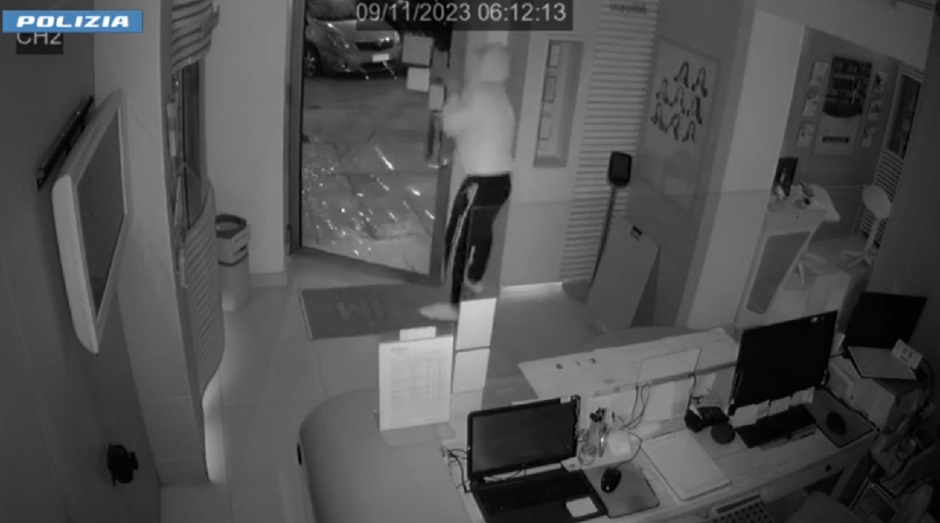 Gli agenti hanno acquisito le immagini dei sistemi di videosorveglianza per risalire agli autori che con una grossa pietra avrebbe spaccato l’ingresso e fatto razzia nel negozio.
