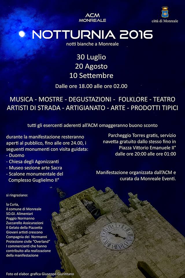 Ecco gli ingredienti dell’edizione 2016 di “Notturnia” , manifestazione organizzata grazie all’impegno dell’Associazione dei Commercianti di Monreale.
