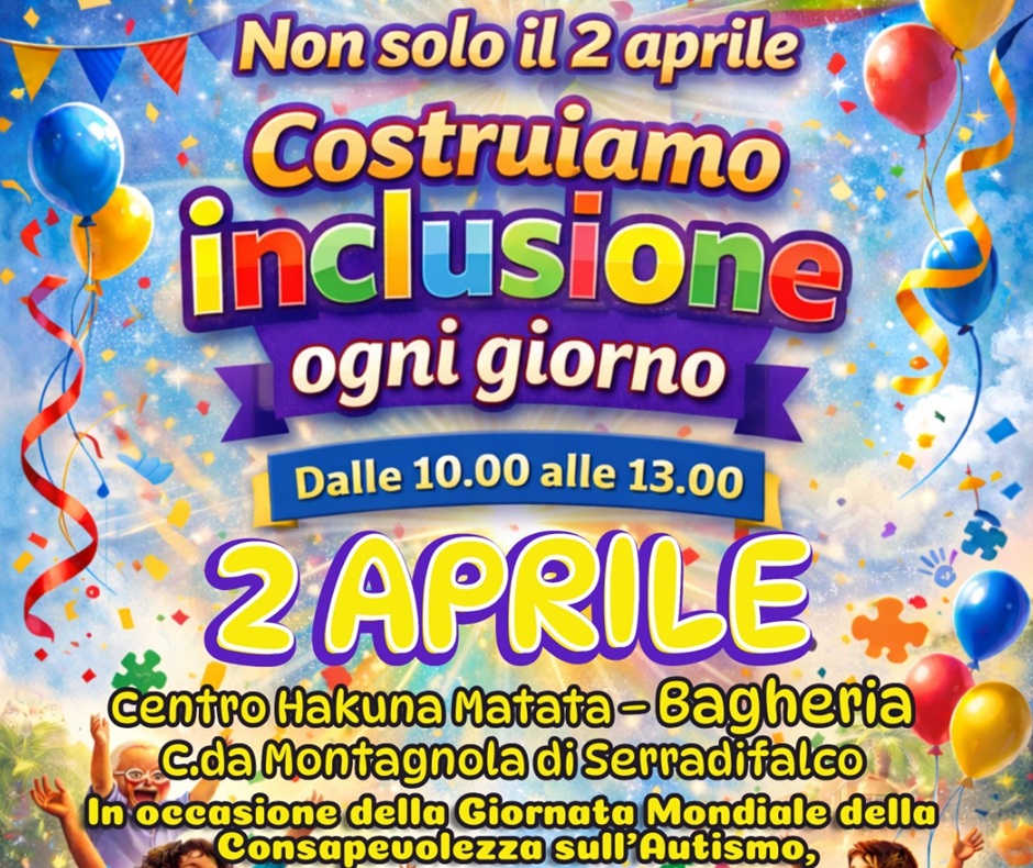 L’associazione promotrice opera da oltre trent’anni nei territori di Palermo e Bagheria, occupandosi di assistenza e supporto a bambini, adolescenti e nuclei familiari che vivono condizioni di fragilità sociale ed educativa. L’appuntamento di giovedì, gratuito e aperto alla cittadinanza, mira a diffondere la cultura dell’inclusione e a sensibilizzare la comunità sul tema dell’autismo e sul rispetto delle diversità.