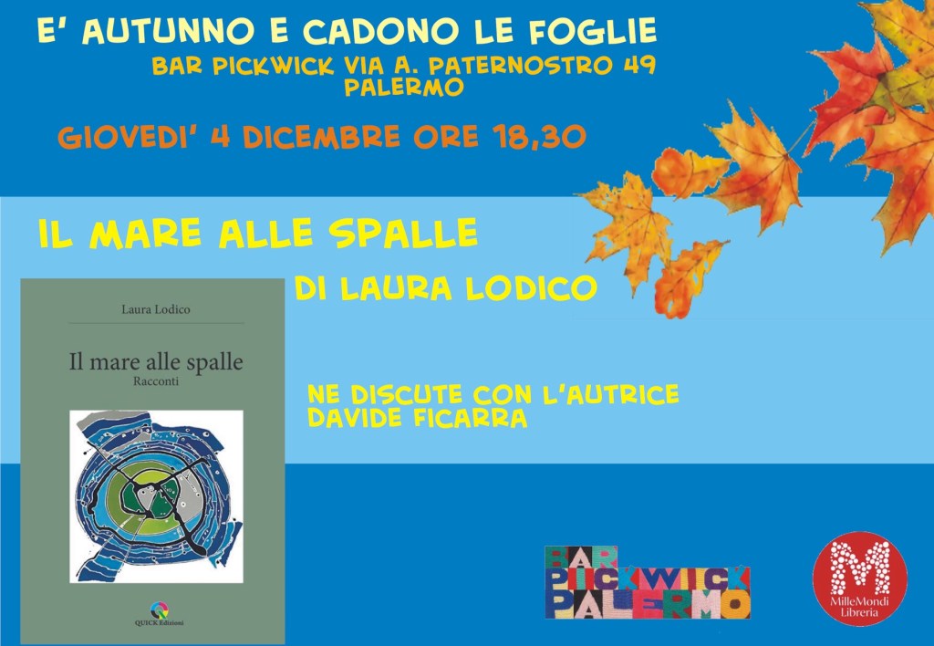 Ultimi incontri della rassegna del Bar Pickwick, “E’ autunno e cadono le foglie”, dedicata alla letteratura ed al fumetto. Giovedì 4 dicembre a partire dalle 18,30 sarà la volta di Laura Lodico con il suo “Il mare alle spalle” edito da Quick Edizioni.