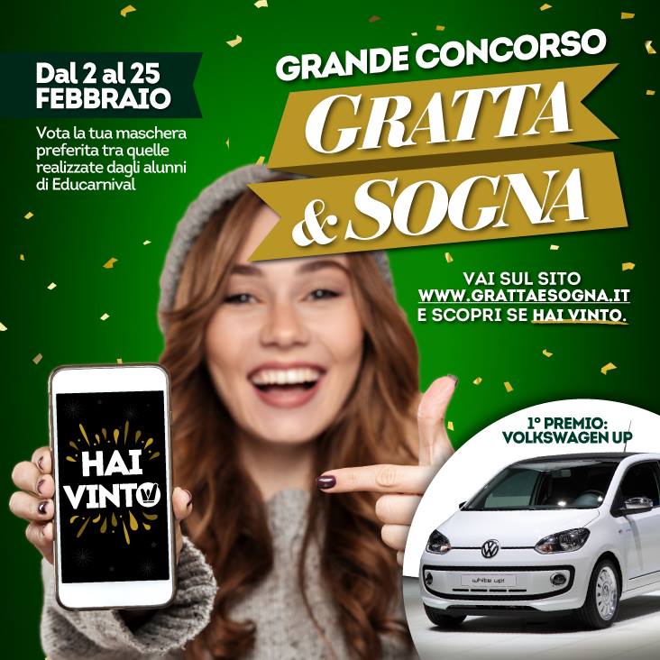 Per tentare la fortuna si potrà anche votare una delle cinquanta maschere di Carnevale realizzate dagli studenti delle scuole di Palermo e provincia, messe in mostra all’interno dei punti vendita del Conca D’Oro. Ad ogni maschera sarà associata uno speciale codice che, se fotografato con il proprio cellulare, darà la possibilità non solo di vincere uno dei premi immediati ma, anche, di stilare una speciale classifica delle tre maschere più votate. Agli studenti che avranno creato i costumi di carnevale più fotografati andranno degli speciali riconoscimenti da parte del centro commerciale.