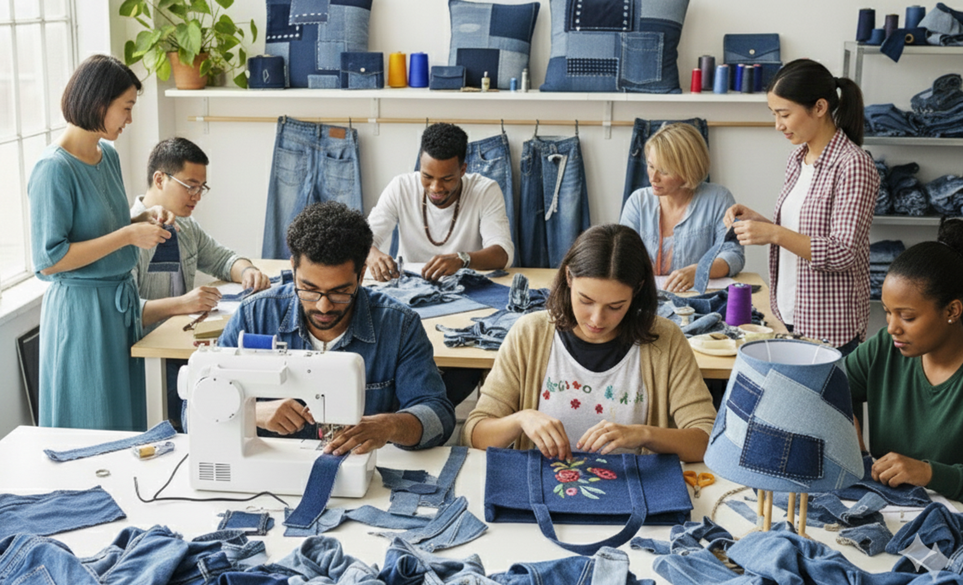 – Creazione di accessori: borse tote da vecchie t-shirt o jeans, fasce per capelli da tessuti recuperati, bracciali o collane con stoffe intrecciate, bottoni, zip.