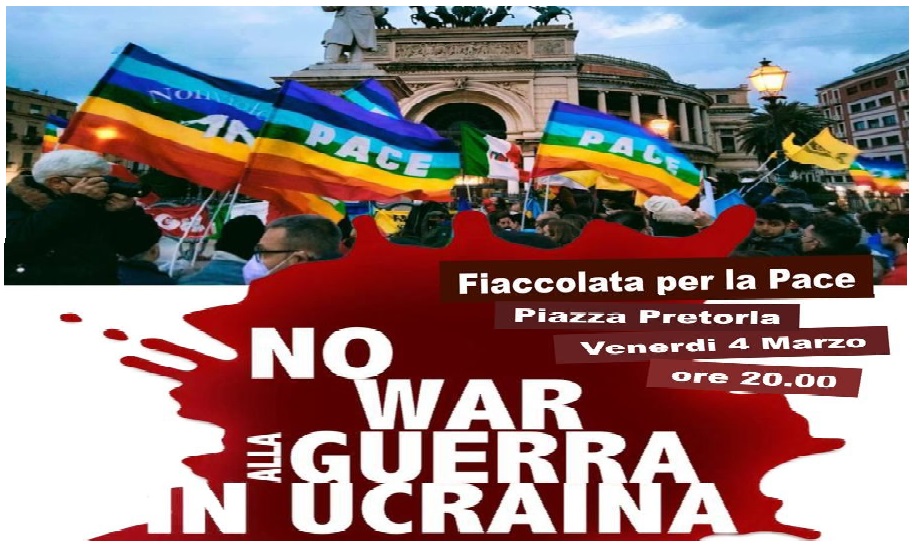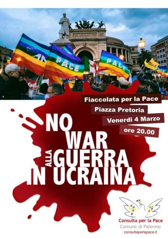 Il Comune di Palermo, d’intesa con la Consulta per la Pace e accogliendo l’appello lanciato dall’arcivescovo Corrado Lorefice, organizza una fiaccolata per dire “No alla guerra in Ucraina”, che si terrà venerdì 4 marzo alle ore 20.00 in piazza Pretoria. Per il Comune sarà presente il sindaco Leoluca Orlando. Al termine della fiaccolata i partecipanti si sposteranno in Cattedrale, dove è previsto un momento di preghiera.