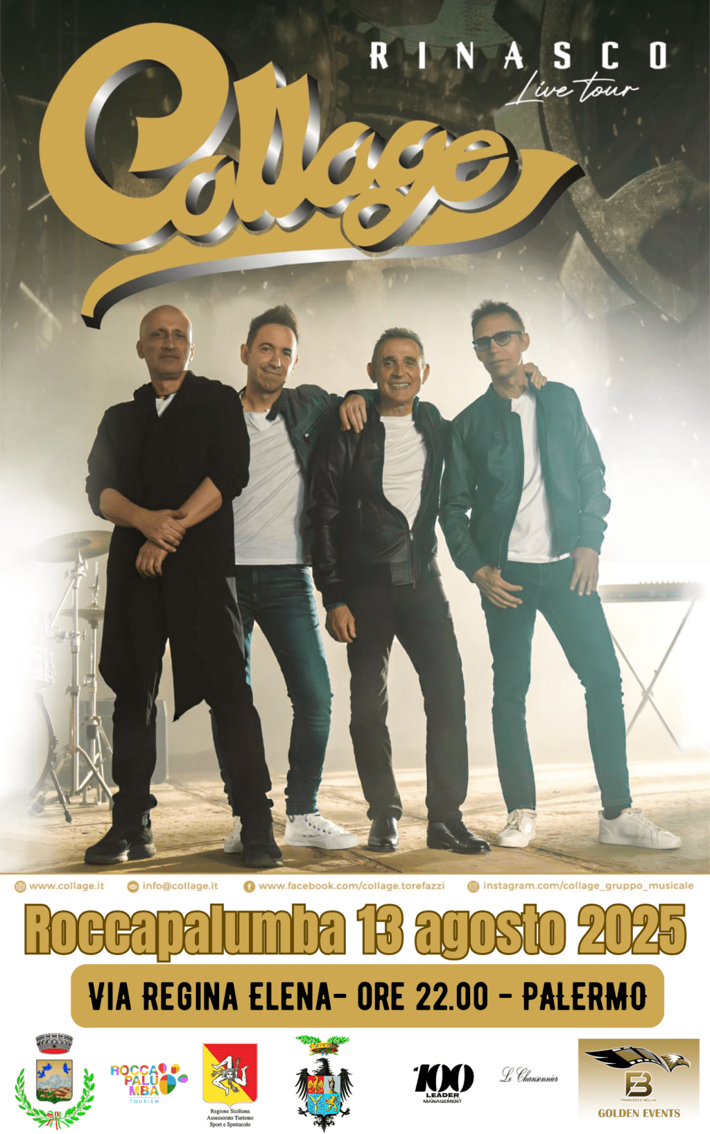 Il cuore pulsante della musica italiana degli anni ’70 e ’80 torna a battere forte: i Collage, storica band simbolo del pop melodico italiano, saranno protagonisti di una straordinaria serata musicale a Roccapalumba il prossimo 13 agosto 2025. L’evento, che si svolgerà in Via Regina Elena alle ore 22:00, promette emozioni, ricordi e musica dal vivo per un pubblico di tutte le età.
