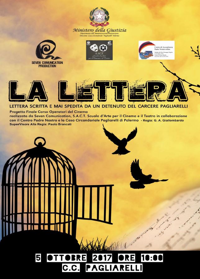 Giovedì 5 ottobre 2017 alle ore 10.00, presso il Teatro della Casa Circondariale Pagliarelli verrà proiettato cortometraggio “La Lettera, lettera scritta e mai spedita da un detenuto del carcere Pagliarelli”, della durata di 15 minuti.