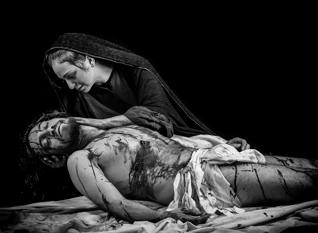 Un accurato progetto fotografico ispirato alla storia biblica del Calvario di Cristo i cui eventi, oggi come ieri, generano emozioni così travolgenti e indagini interiori così intime, da renderci consapevoli della nostra imperfetta e caduca natura umana. Immagini dal forte impatto visivo ed emozionale, che oltre ad esprimere una potente carica di umana spiritualità, rappresentano un episodio unico e irripetibile sul quale focalizzare l’attenzione e riflettere. Tutto è incentrato sulla narrazione delle espressioni, delle pose, degli sguardi colmi di empatia. Sono ritratti intensi ed incisivi che sembrano richiamare nel sapiente e scenografico sfruttamento della luce e delle ombre e nei colori densi e ricchi i dipinti di Rembrandt, che impostava la scena sempre su sfondo scuro riuscendo a renderne evidente il messaggio morale.