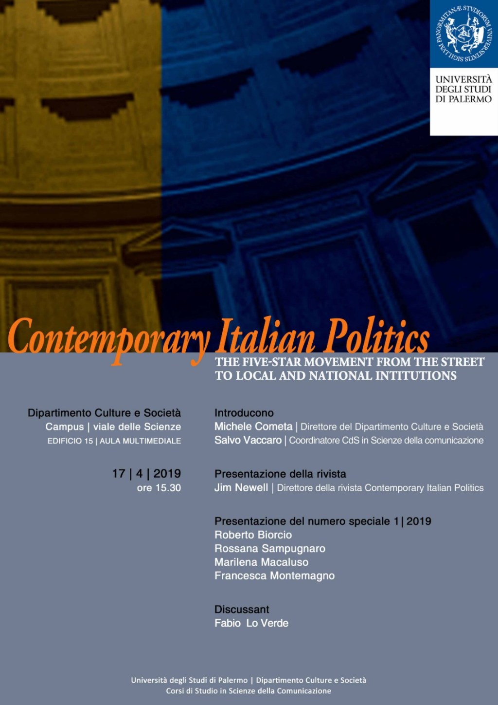 Parte dalla Sicilia la presentazione della rivista britannica Contemporary Italian Politics e del numero speciale “Il Movimento 5 Stelle dalla piazza alle istituzioni locali e nazionali” curato da Rossana Sampugnaro (Unict) e Roberto Biorcio (Unimib).