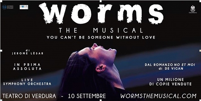 Il Teatro di Verdura di Palermo sarà la cornice dell’anteprima assoluta del musical “Worms”, in scena il 10 settembre alle 21.30. Lo spettacolo di Jerome Lèsar è liberamente ispirato al bestseller di Delphine De Vigan “No et moi” con oltre un milione di copie vendute in Francia, ed edito in Italia dalla Mondadori con il titolo “Gli effetti secondari dei sogni”.