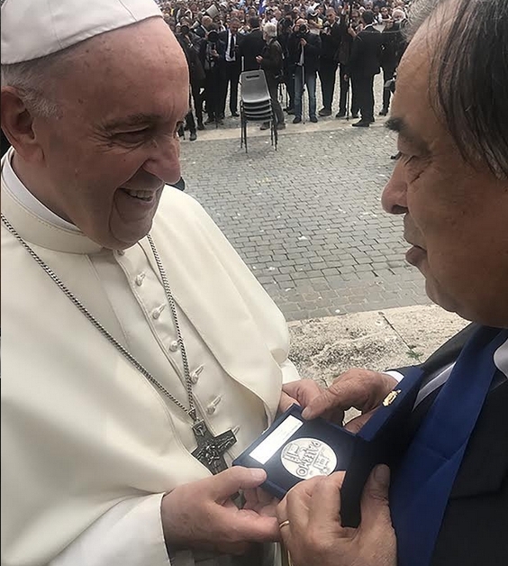 Il sindaco ha donato al Santo Padre la medaglia ricordo della città con la frase la frase di Pino Puglisi: “Se Ognuno fa qualcosa, allora si può fare molto”, manifestando l’auspicio che proprio Padre Puglisi possa essere Patrono della città metropolitana di Palermo accanto ai Santi Patroni delle singole città dell’area metropolitana .