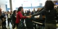 Ieri la partenza dei primi 68, salutati in aeroporto dal sindaco e presidente della Fondazione, Leoluca Orlando, e dal sovrintendente Francesco Giambrone. Oggi partiranno altri 62. E ieri all’aeroporto di Punta Raisi flash mob degli artisti (in gran parte componenti del Coro e ballerini) che hanno cantato e ballato improvvisamente davanti ai check in delle partenze, accompagnati al pianoforte dal maestro Giuseppe Cinà, suscitando l’interesse e gli applausi dei viaggiatori di passaggio.