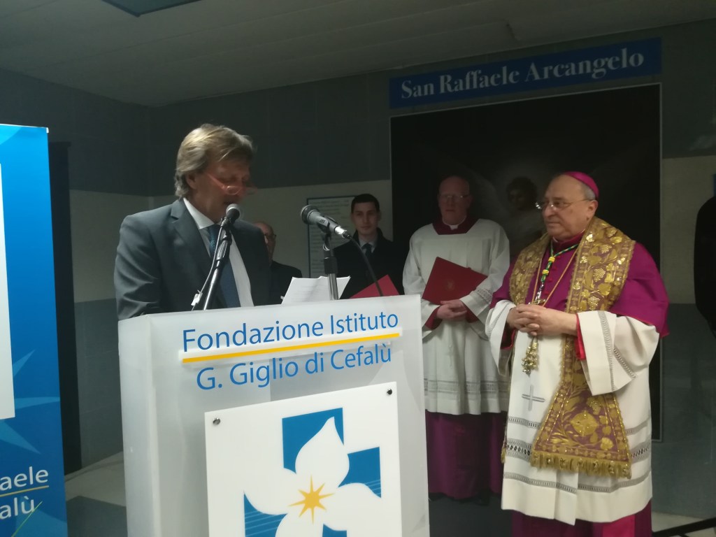 Ad accogliere all’arrivo il nuovo vescovo il presidente della Fondazione Giglio, Giovanni Albano, il sindaco di Cefalù, Rosario Lapunzina, e il cappellano dell’ospedale mons. Sebastiano Scelsi, oltre a al personale sanitario e i pazienti dell’ospedale.