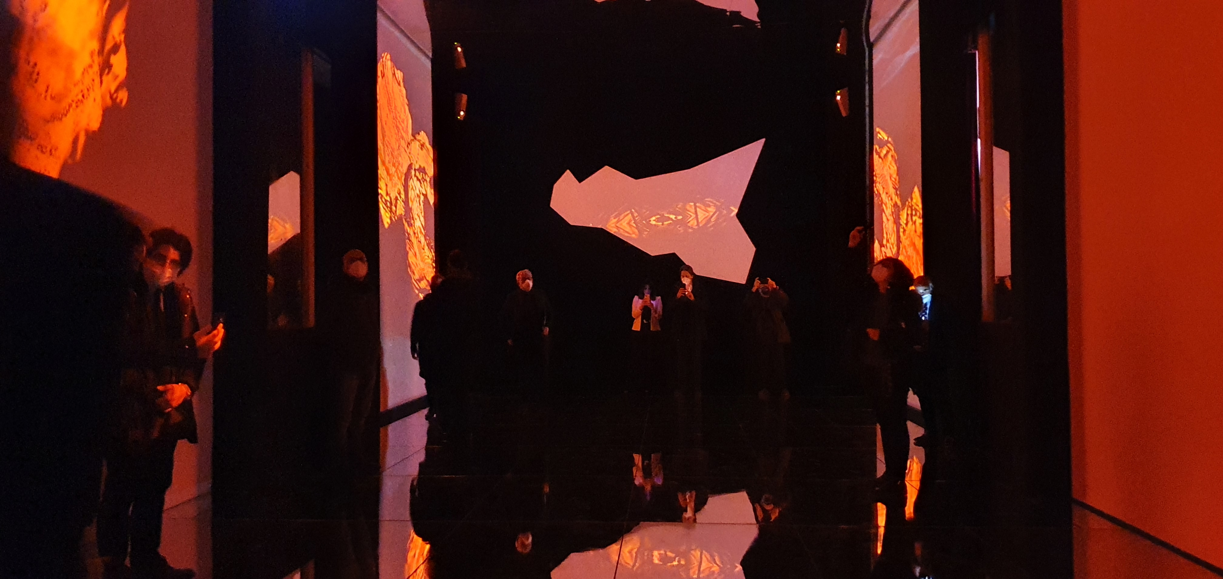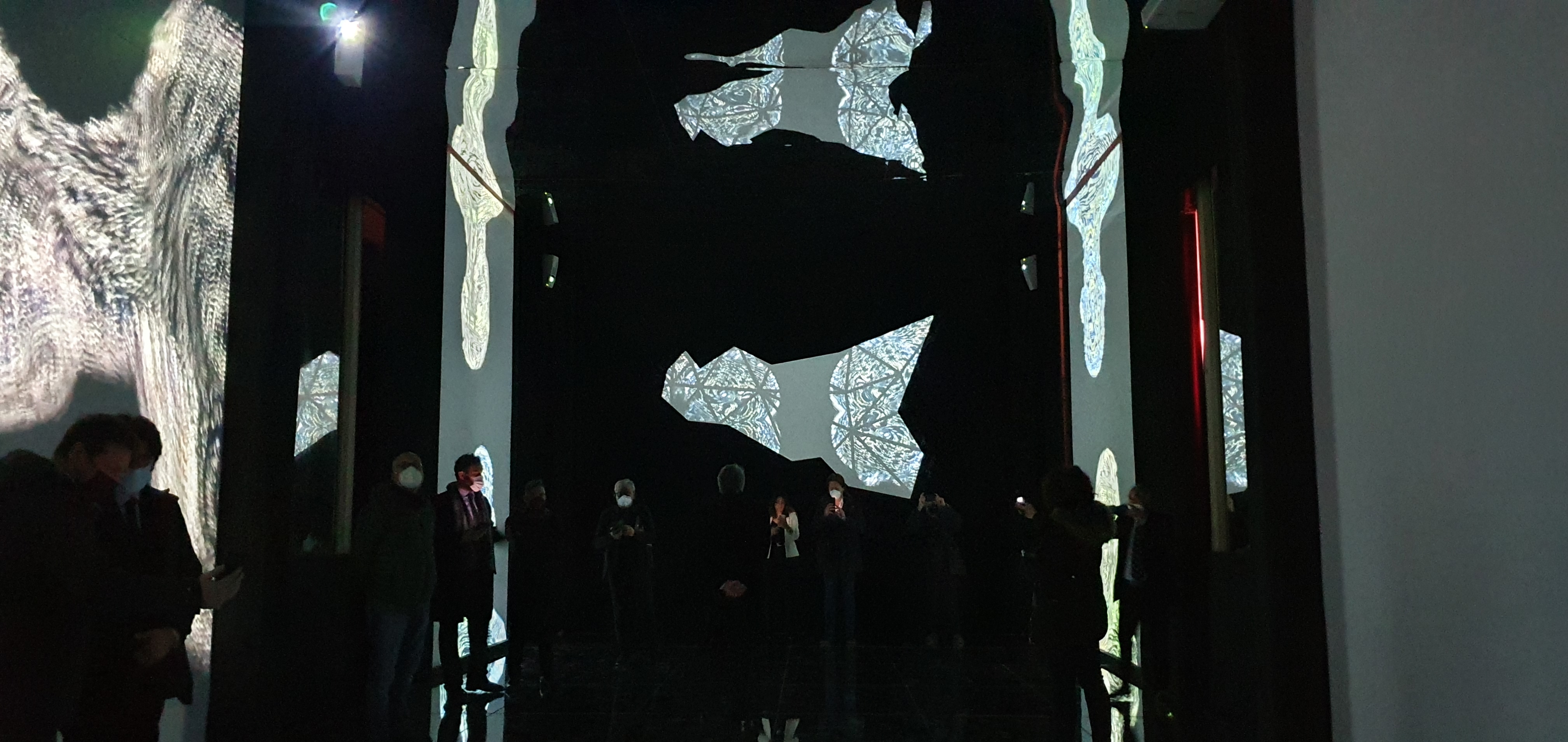 “Un luogo magico – ha spiegato Andriolo – che spero rievochi uno spazio infinito. Le immagini proiettate sono scansioni 3D di persone reali, sculture virtuali vestite di pattern che ho coniugato con motivi attinti dalla tradizione delle maioliche siciliane, il tutto all’interno di una Sala degli Specchi dove ho voluto creare un gioco in cui perdersi e ritrovarsi”.