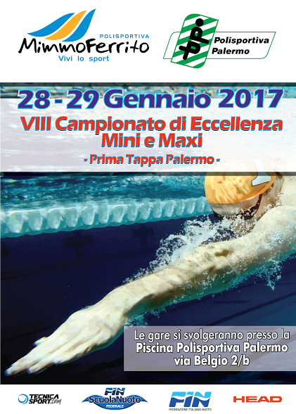 Prende il via alle 15 di sabato 28 gennaio e si disputerà anche per tutta la giornata del 29 gennaio nella piscina della Polisportiva Palermo, in via Belgio, la prima delle quattro tappe dell’Ottavo Campionato di Eccellenza Mini e Maxi riservato alle Scuole Nuoto della provincia di Palermo. In tutto 450 gli atleti che gareggeranno in un grande appuntamento sportivo pre-agonistico, una volta definito il Gran Prix delle Scuole Nuoto.