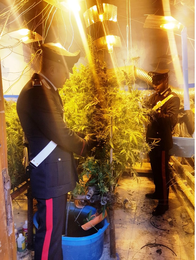 I carabinieri hanno arrestato Angelo Ragusa, 40 anni, accusato di coltivazione di marijuana e furto di energia elettrica.