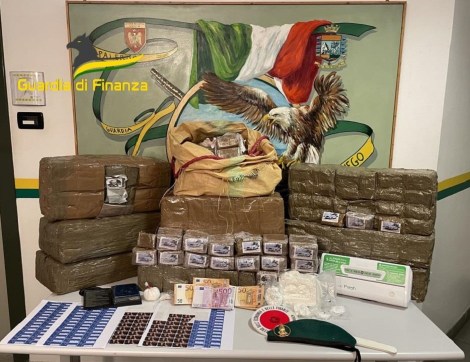 La vendita della sola sostanza riconducibile verosimilmente ad hashish avrebbe fruttato nel mercato al dettaglio introiti per oltre un milione di euro, al quale si aggiungono i circa 75mila euro che avrebbe conseguito l’odierno arrestato dalla vendita della cocaina, parte della quale rinvenuta ancora purissima.