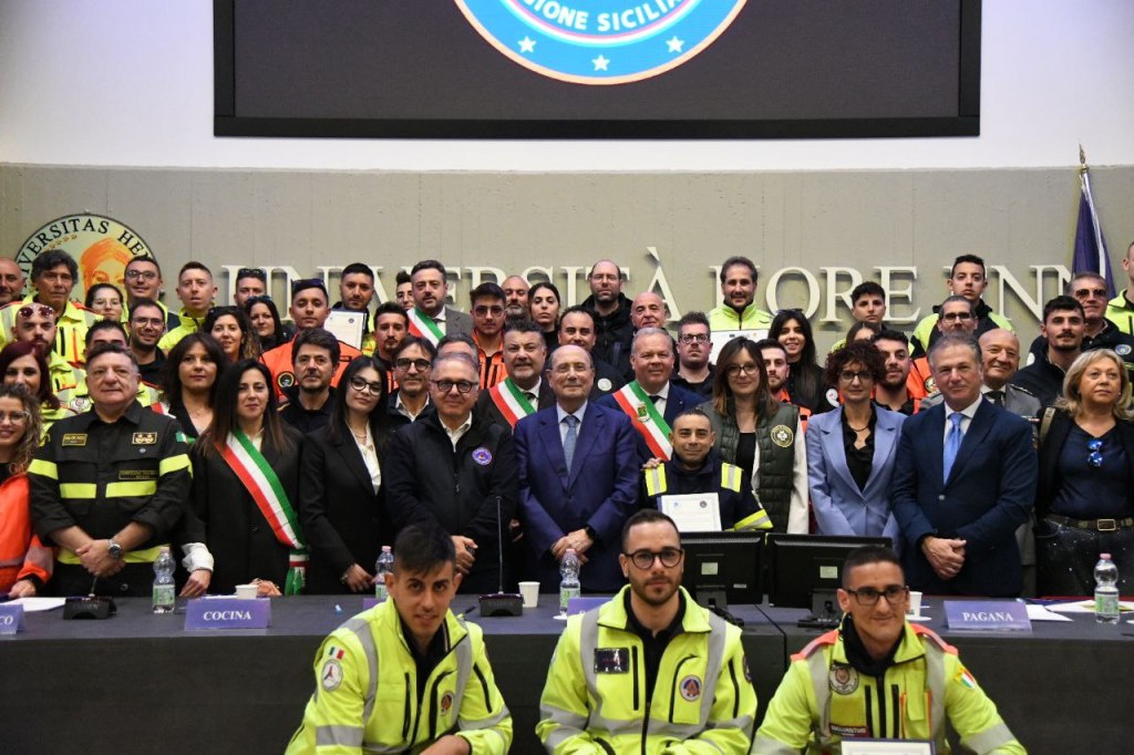 Il presidente della Regione Renato Schifani ha partecipato questa mattina alla cerimonia di consegna degli attestati che si è svolta nell’auditorium “Antonio Scelfo” dell’Università Kore di Enna. Presenti anche per la Regione Siciliana l’assessore al Territorio e ambiente Elena Pagana, il dirigente generale della Protezione civile regionale Salvatore Cocina e il comandante del Corpo forestale Giuseppe Battaglia. In sala un pubblico di oltre mille persone, tra cui molti primi cittadini siciliani e tanti volontari della Protezione civile già in servizio.