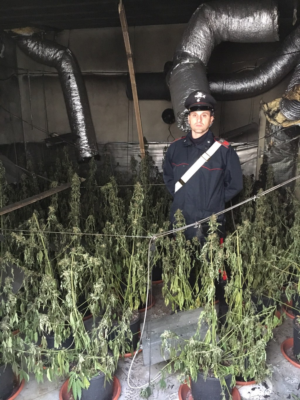 Nel corso del sopralluogo i militari e i vigili del fuoco hanno scoperto che ad andare in fiamme era stato l’impianto abusivo di energia elettrica e un’intera piantagione di marijuana che cresceva florida al secondo piano.