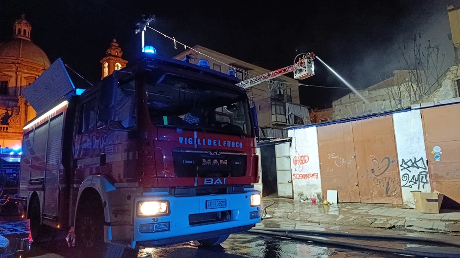 Un incendio è divampato nella notte nel quartiere Ballarò, a Palermo, distruggendo un magazzino che si trova di fronte alla chiesa del Carmine. Le fiamme, altissime, hanno svegliato molti residenti intorno alle 3 del mattino.