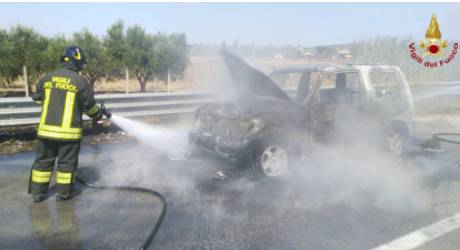 Intervento dei vigili del fuoco nella mattinata del 18 agosto. Vigili in azione sulla strada a scorrimento veloce Palermo-Sciacca nei pressi dello svincolo del comune di Giacalone, per l’incendio di un’autovettura.
