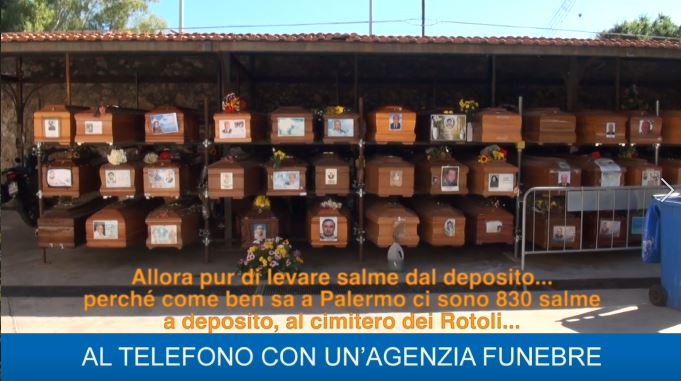 L’inchiesta ruota attorno alla gestione dei servizi cimiteriali di Palermo e all’ordinanza che permette di ottenere il trasporto e la cremazione gratuita dei cari defunti. Una decisione presa dall’amministrazione comunale per cercare di arginare la drammatica situazione dei Rotoli. Ma, come abbiamo potuto dimostrare, a Palermo c’è qualcuno che continua a voler fare il furbo, forse approfittando del momento di dolore delle persone che hanno appena perso una persona cara e che sono disposte a tutto pur di non vedere il proprio caro stipato tra altre centinaia di bare. Insomma, se la gestione del cimitero è ormai al collasso, c’è qualche impresa funebre che continua ad approfittare del momento di emergenza.