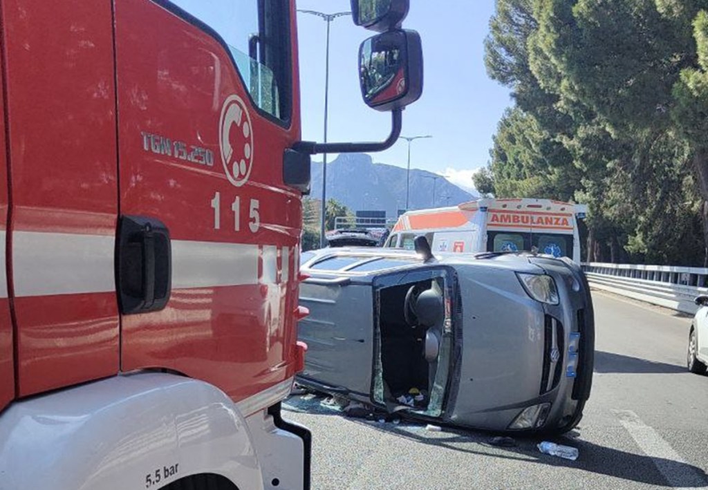 Incidente stradale sulla Palermo Catania all’altezza dello svincolo di Villabate. Due auto si sono scontrate e una ha cappottato.