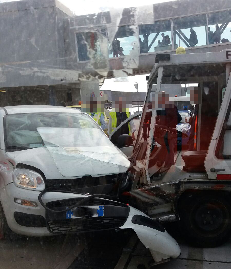 Incidente nella zona del parcheggio degli aeromobili del Falcone Borsellino tra una vettura e un trattore utilizzato per trasportare i bagagli.